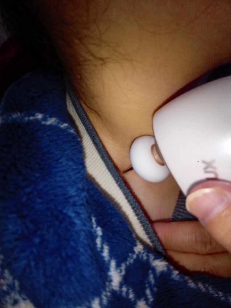 ▲妻の背中にNIPLUX BEGUNを当てている動画です