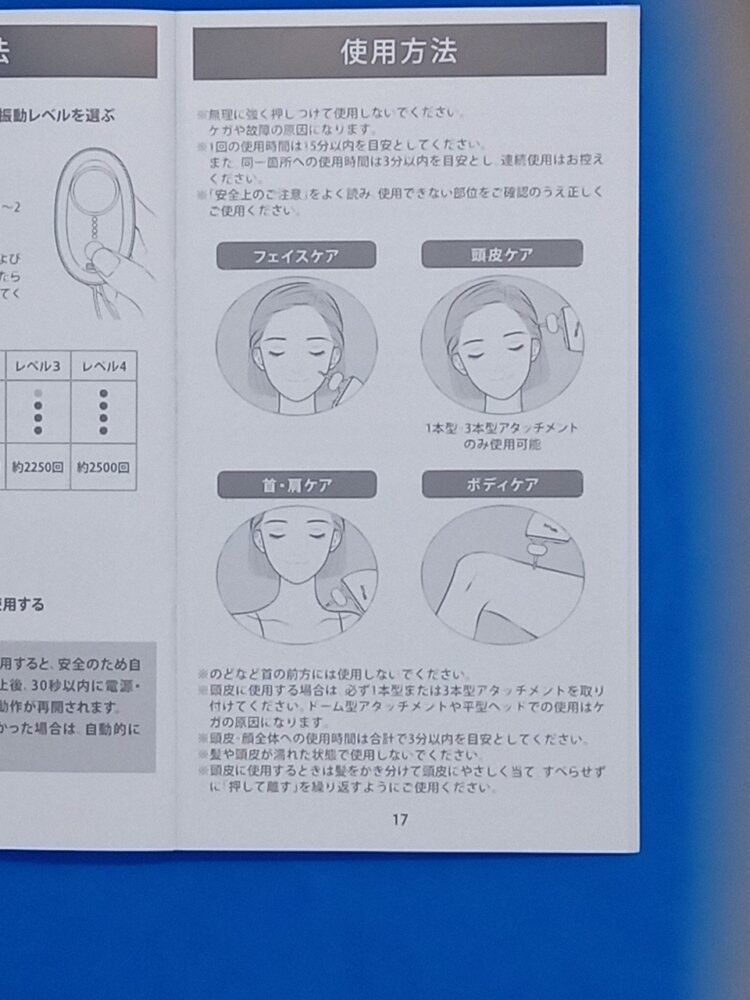 ※顔への使用は、必ず取扱説明書に沿い、弱い振動・短時間から試すことが前提です。