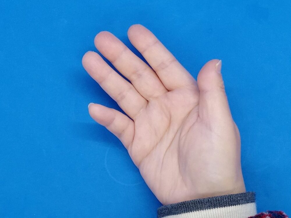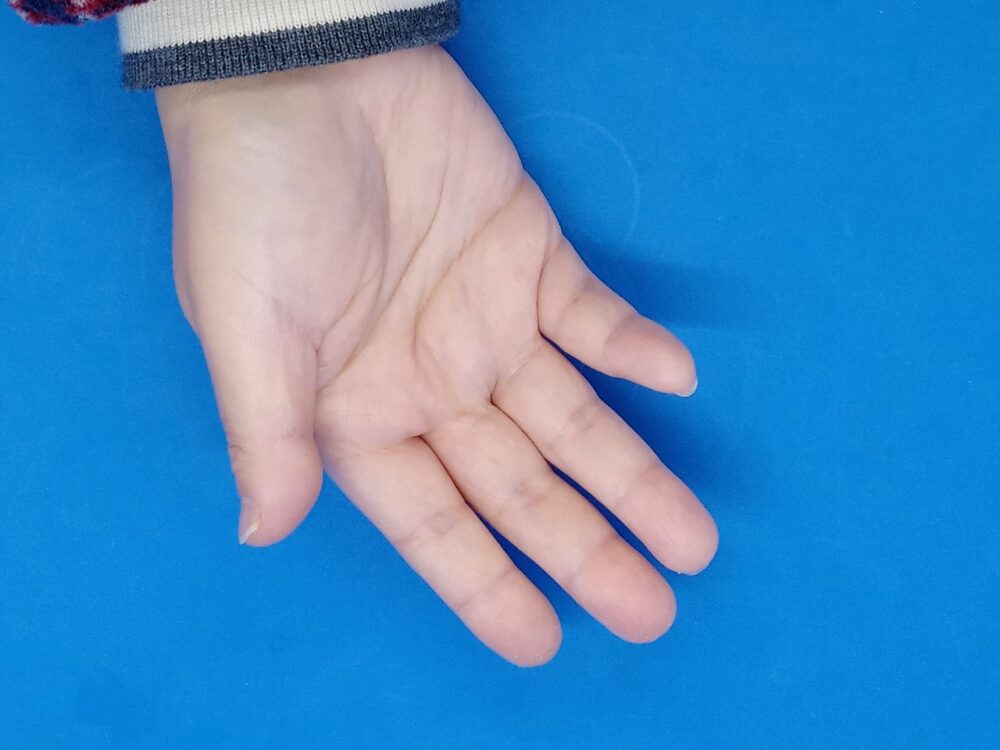 ▲妻の手の上にNIPLUX BEGUNを置いて重いかどうか?感覚を確かめました。